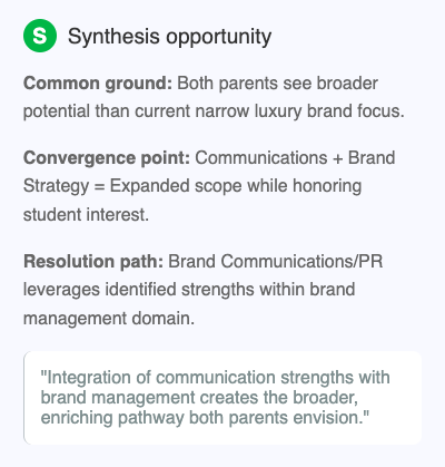 Evaluate (week 2-3): Viable paths with the gaps, the confidence score, and the family learns to weigh trade-offs using your own criteria